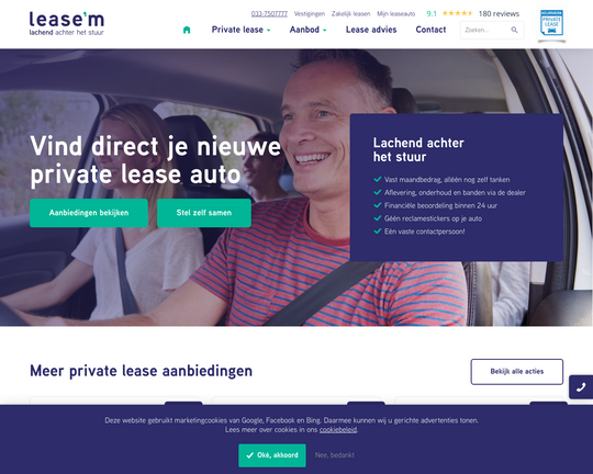 Lease'm biedt een totaalpakket aan voor iedereen die stressvrij wil leasen, zonder onverwachte verrassingen. Met een vast maandbedrag en duidelijkheid over alle bijkomende kosten, weet je precies waar je aan toe bent. Verder kun je bij Lease'm rekenen op persoonlijk en deskundig advies, wat je helpt bij het kiezen van het juiste leasevoertuig. Of je nu op zoek bent naar de goedkoopste optie of de meest luxueuze, Lease'm heeft voor ieder wat wils.